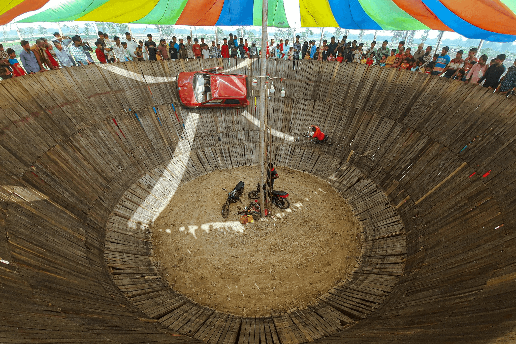 মেলা প্রাঙ্গণে ড্রামের বিকট শব্দ, ধোঁয়ার কুণ্ডলী আর হাজারো মানুষের চিৎকার - সবকিছুর কেন্দ্রে একটি বিশাল কাঠের সিলিন্ডার। নাম তার 'মউত কা কুয়া' বা 'মৃত্যুর কুয়া'। ওপর থেকে নিচে তাকালে বুক কেঁপে ওঠে, অথচ সেই খাড়া দেয়ালে মাধ্যাকর্ষণকে বৃদ্ধাঙ্গুলি দেখিয়ে তীব্র গতিতে বাইক আর গাড়ি ছোটাচ্ছেন একদল মানুষ। তাঁদের জন্য এটি স্রেফ একটি স্টান্ট নয়, বরং জীবনের রুটি-রুজি।