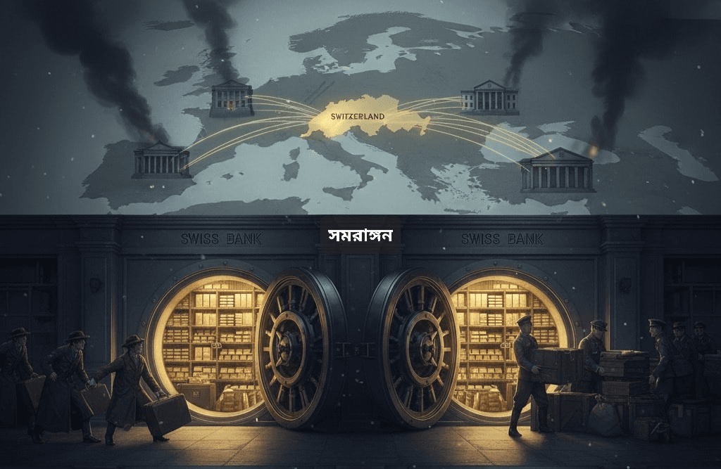 সুইজারল্যান্ডের আল্পস পর্বতমালার নিচে লুকানো ভল্ট, নাৎসি বাহিনীর লুট করা বিপুল পরিমাণ সোনা, এবং আধুনিক বিশ্বের গোপন অর্থনীতির কেন্দ্রবিন্দু এই সবকিছুর মূলে রয়েছে ‘সুইস ব্যাংক’। দ্বিতীয় বিশ্বযুদ্ধের সময় যখন পুরো ইউরোপ জ্বলছিল, তখন পাহাড়বেষ্টিত ছোট্ট একটি দেশ শান্তিতে ছিল। সেই দেশটি হলো সুইজারল্যান্ড। কিন্তু এই ‘শান্তি’ বা ‘নিরপেক্ষতা’ কি কেবলই রাজনৈতিক কৌশল ছিল, নাকি এর পেছনে লুকিয়ে ছিল ইতিহাসের বৃহত্তম অর্থনৈতিক লেনদেন?
